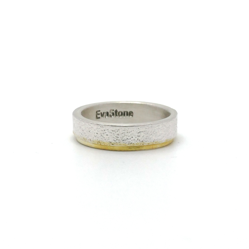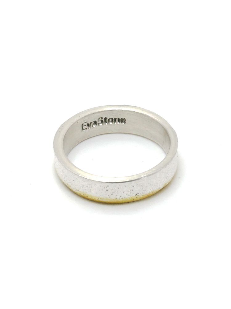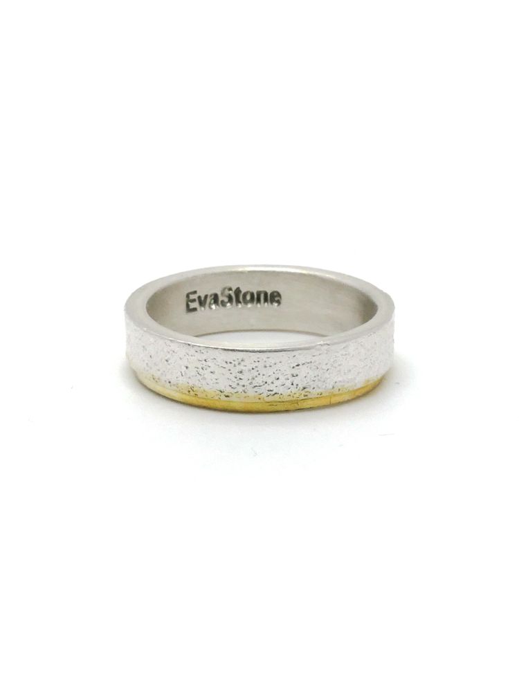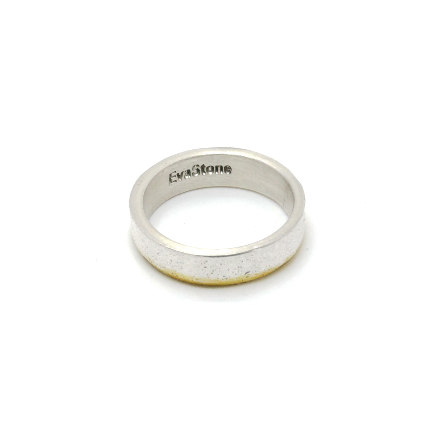 살짝 두드린 반지대에 골드 도금으로 포인트를 준 심플한 반지
