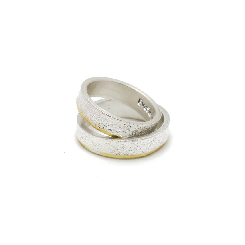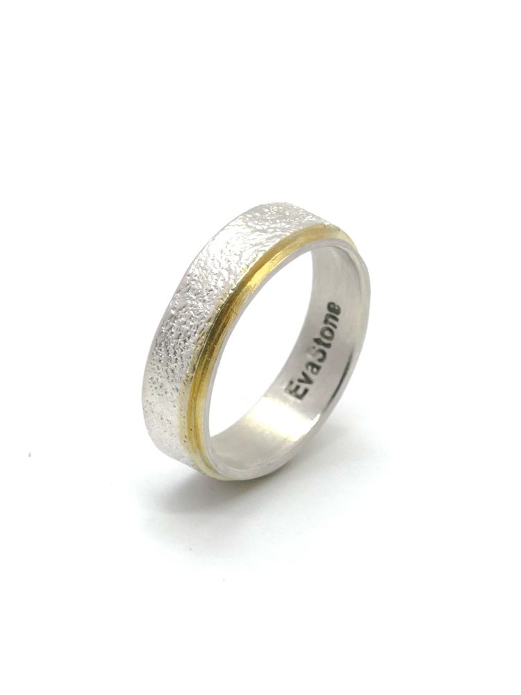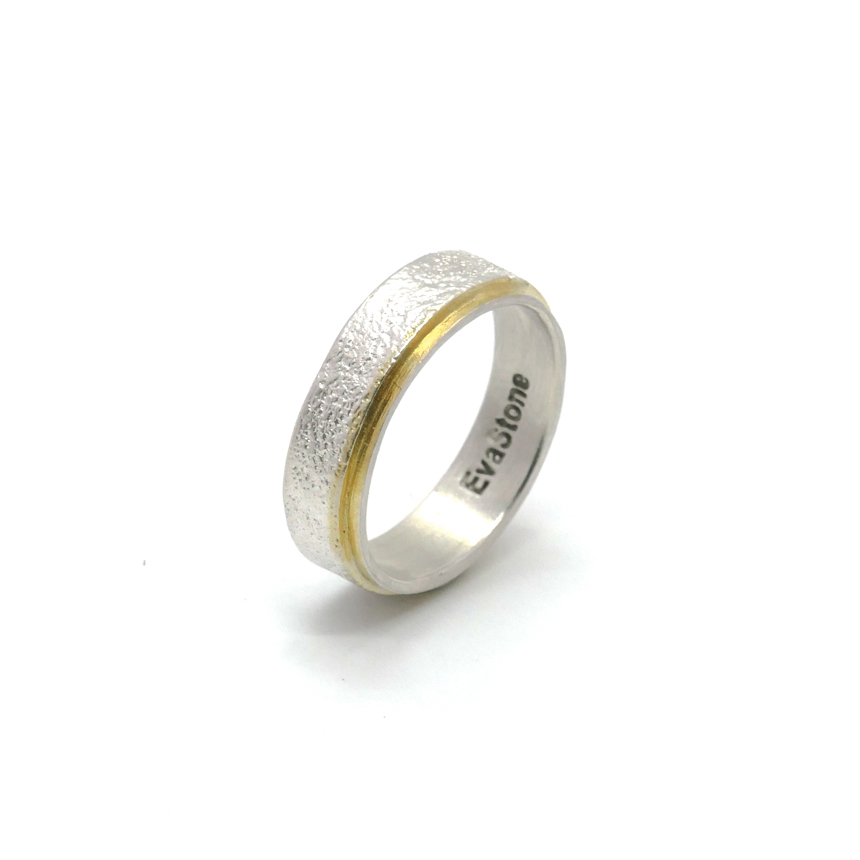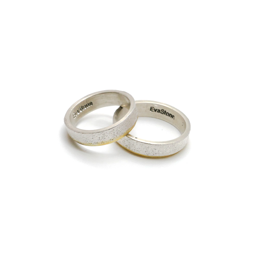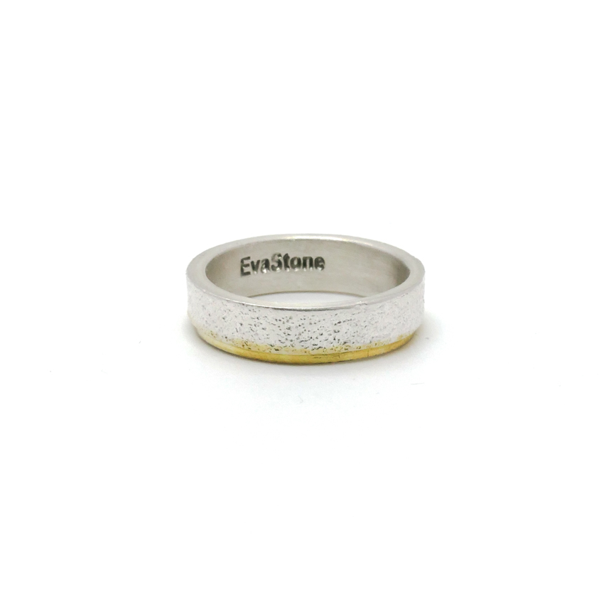 살짝 두드린 반지대에 골드 도금으로 포인트를 준 심플한 반지