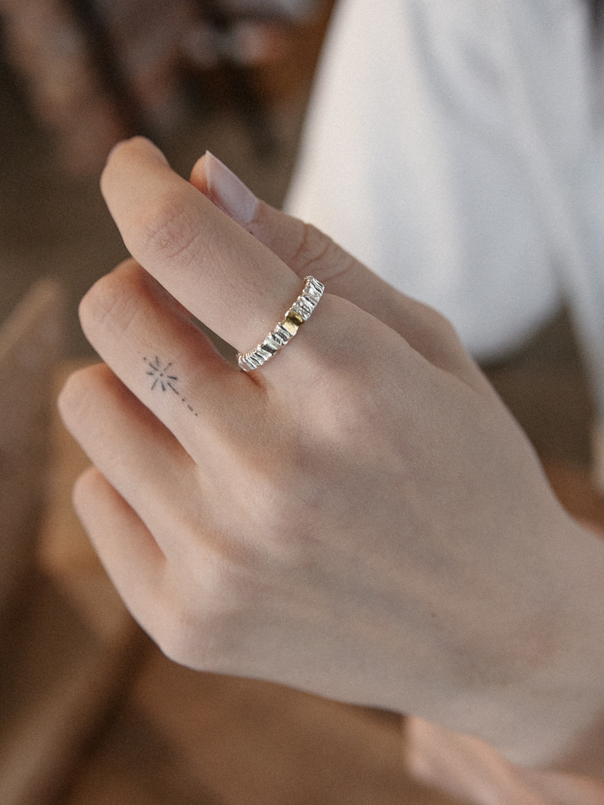러프하게 깎인 단면과 실제 골드가 포인트로 들어간 유니크한 링