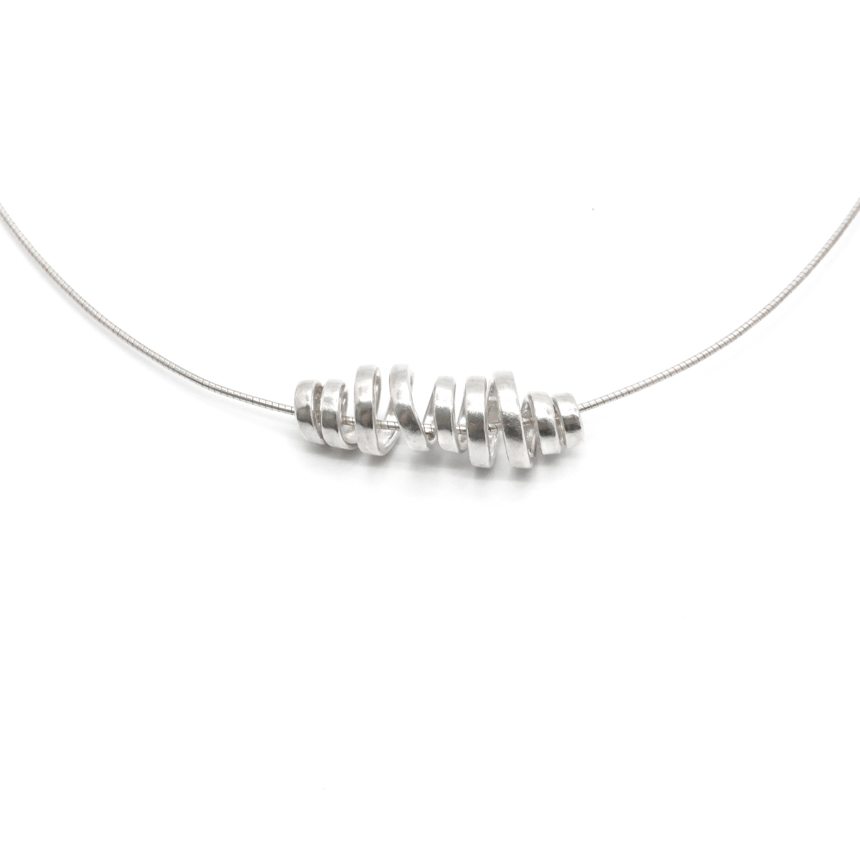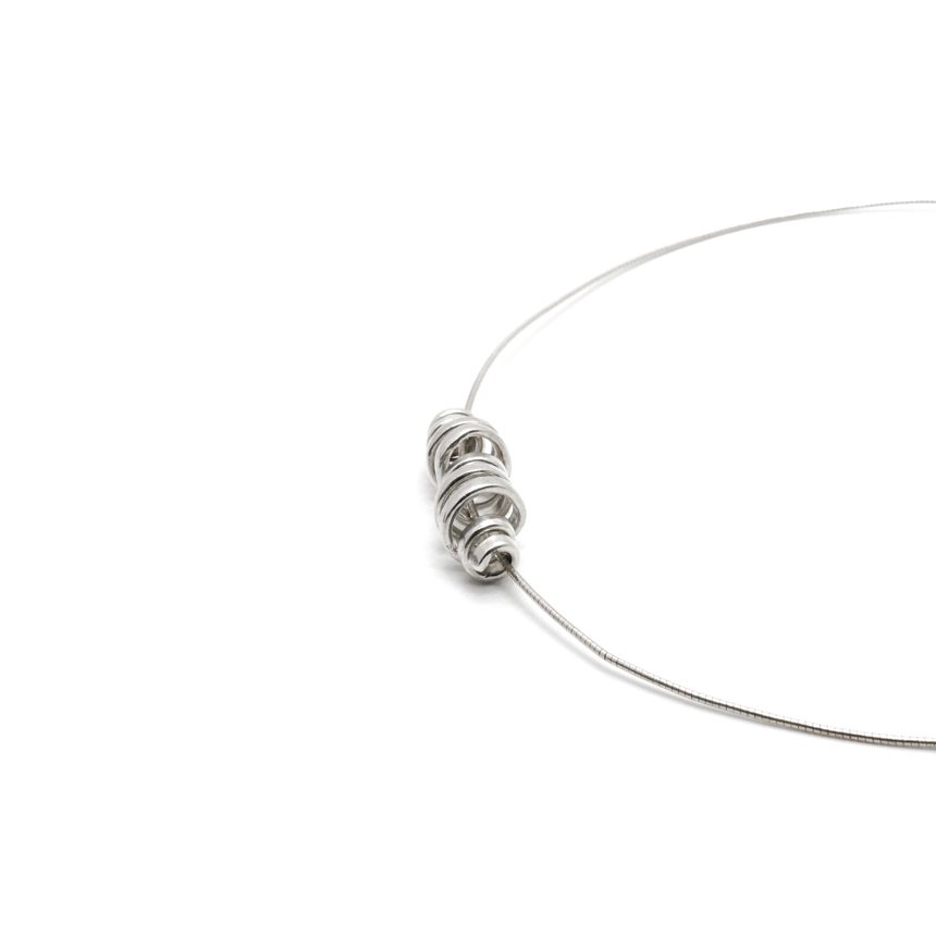 은 선을 볼륨감있게 꼬아 제작한 독특한 목걸이