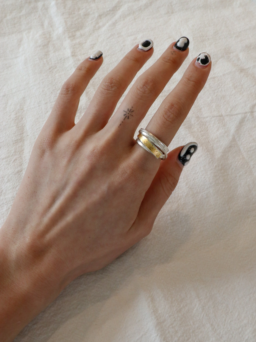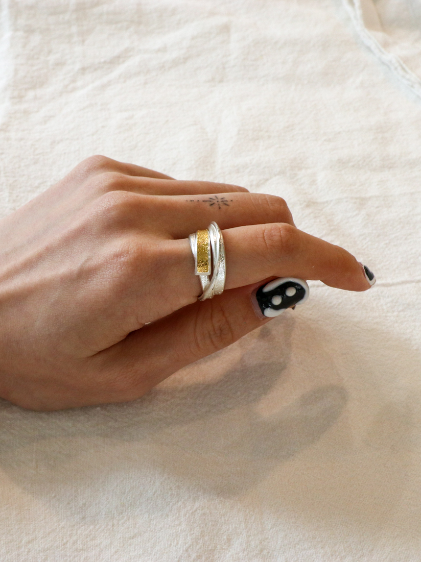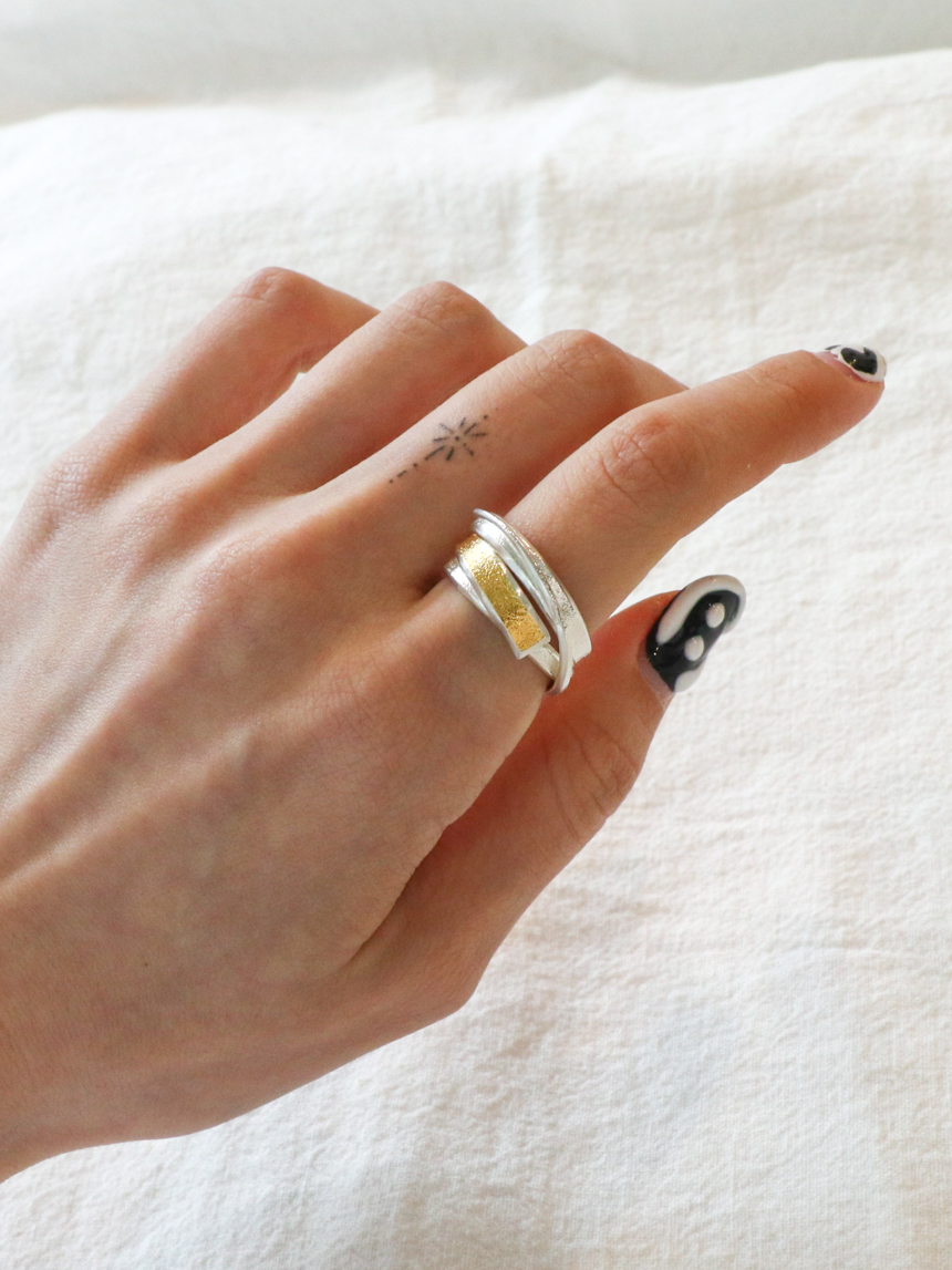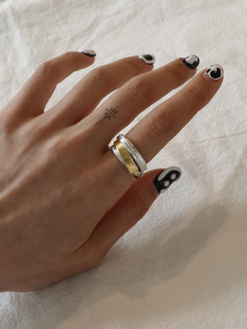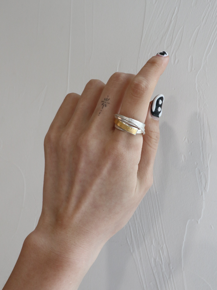 우주를 은으로 그리듯 한 선으로 꼬인듯한 볼륨감있는 반지