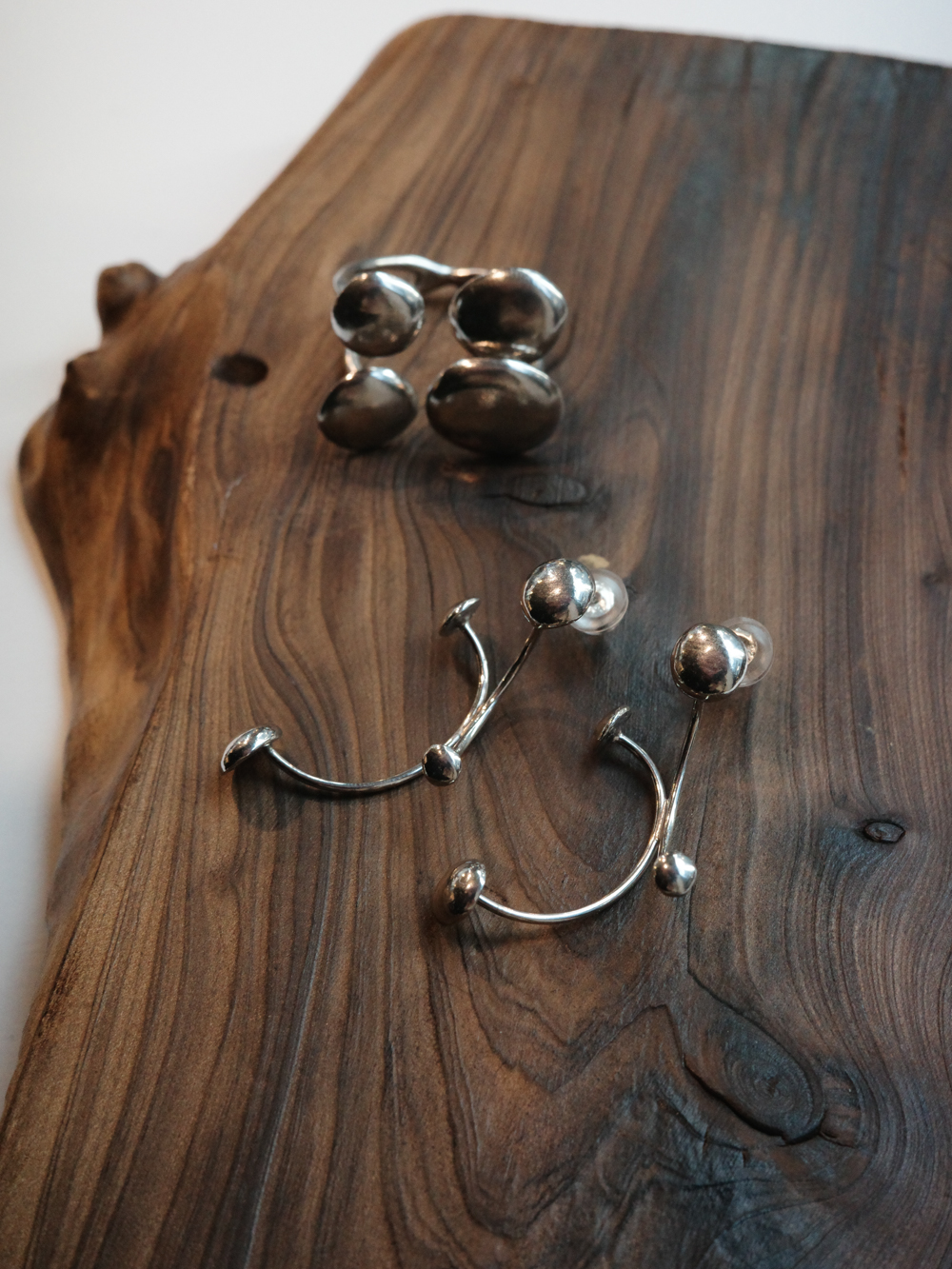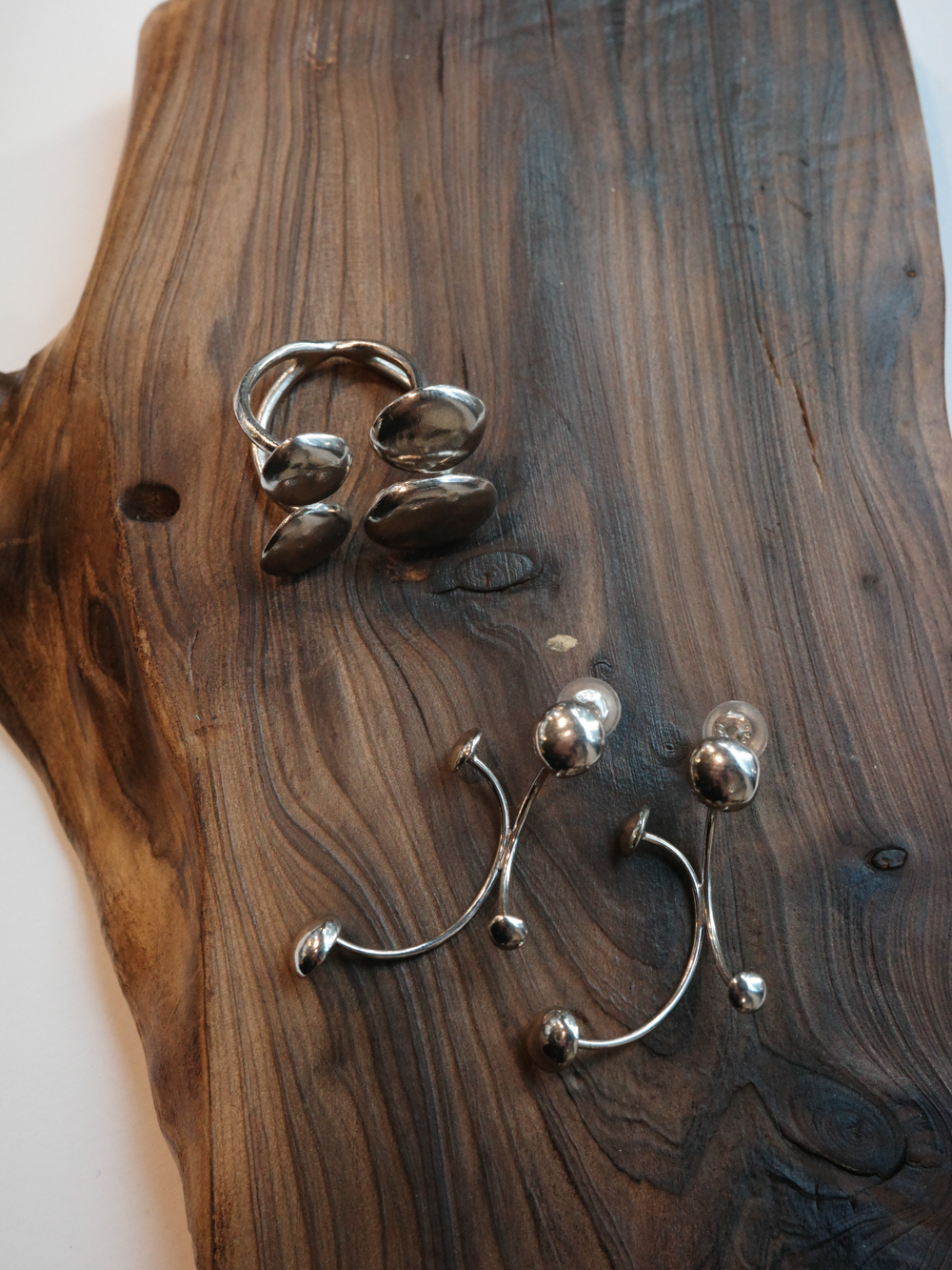 떨어지는 빗방울의 둥근 흐름, 닿는 순간 번지는 파동,잔잔하게 고이는 물결 등의 장면을 실버 오브제로 재해석 하였습니다.