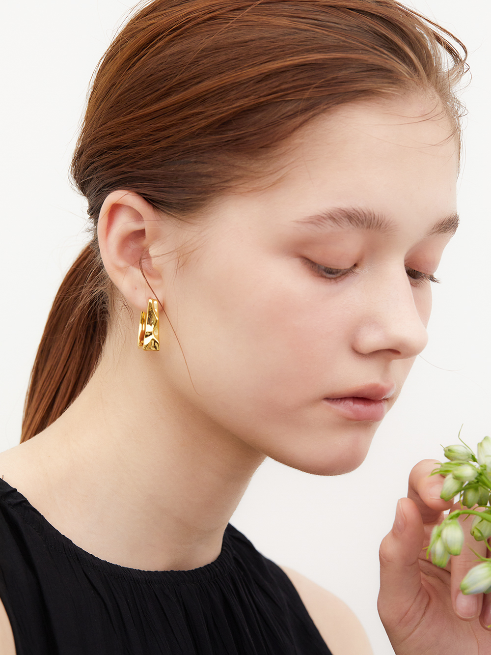 귀걸이의 단면은 빛을 움직임에 따라 분산시키며, 착용 시 얼굴선을 따라 자연스러운 입체감을 형성합니다.