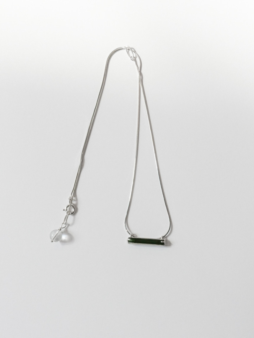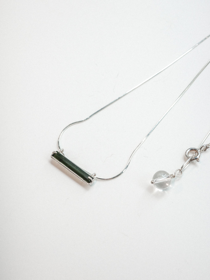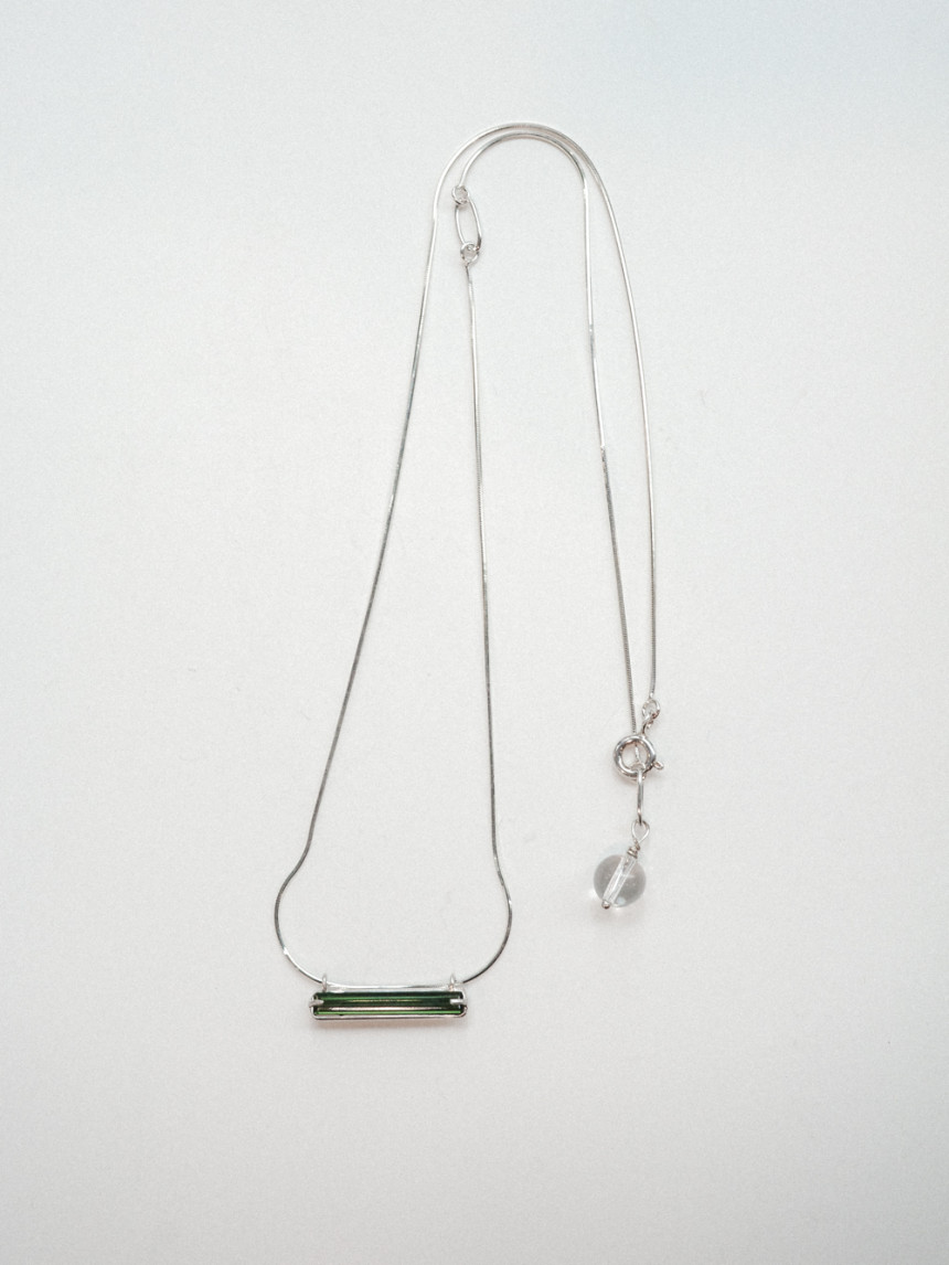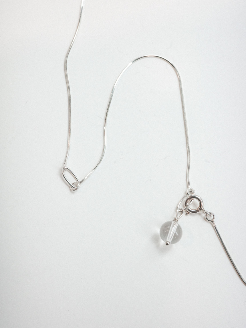 목걸이 끝부분의 투명한 백수정 원석이 드롭되어