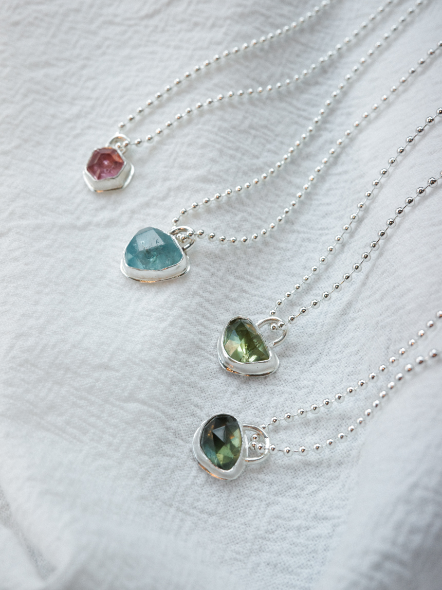 핑크, 블루, 그린색의 러프한 투어멀린을